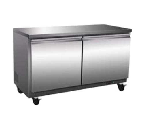 Serv-Ware – Refrigeration – 12 cu. ft. Undercounter Freezer – Dimensions: 48.2″ W x 29.9″ D x 35.5″ H – Exterior Material: Stainless Steel – Interior Material: Painted Aluminum w/ ABS Side Panels & 304 S/S Floor – Insulation Material: CFC Free Foam – Shelf Material: PVC Coated Wire – # of Shelves: 1 per Door – Voltage: 115 – Amps: 2.4 – Hz: 60 – Phase: 1 – Temperature Range: -10°F – 10°F – Refrigerant + Charge oz.: R290 / 3.53 oz. – BTU/H: 3800 – Defrosting: Every 6 Hours – Horsepower: 1/2 – Storage Capacity: 12 cu. ft. – Warranty – Parts on Labor on Entire Unit: 3 Years – Warranty – Compressor, Part Only: 5 Years